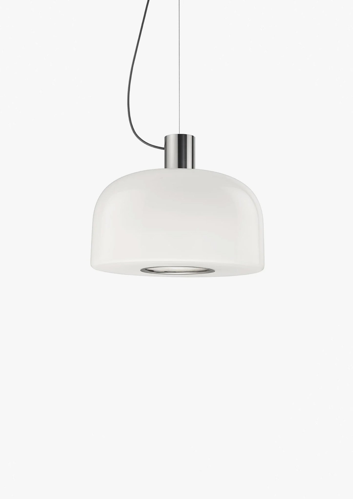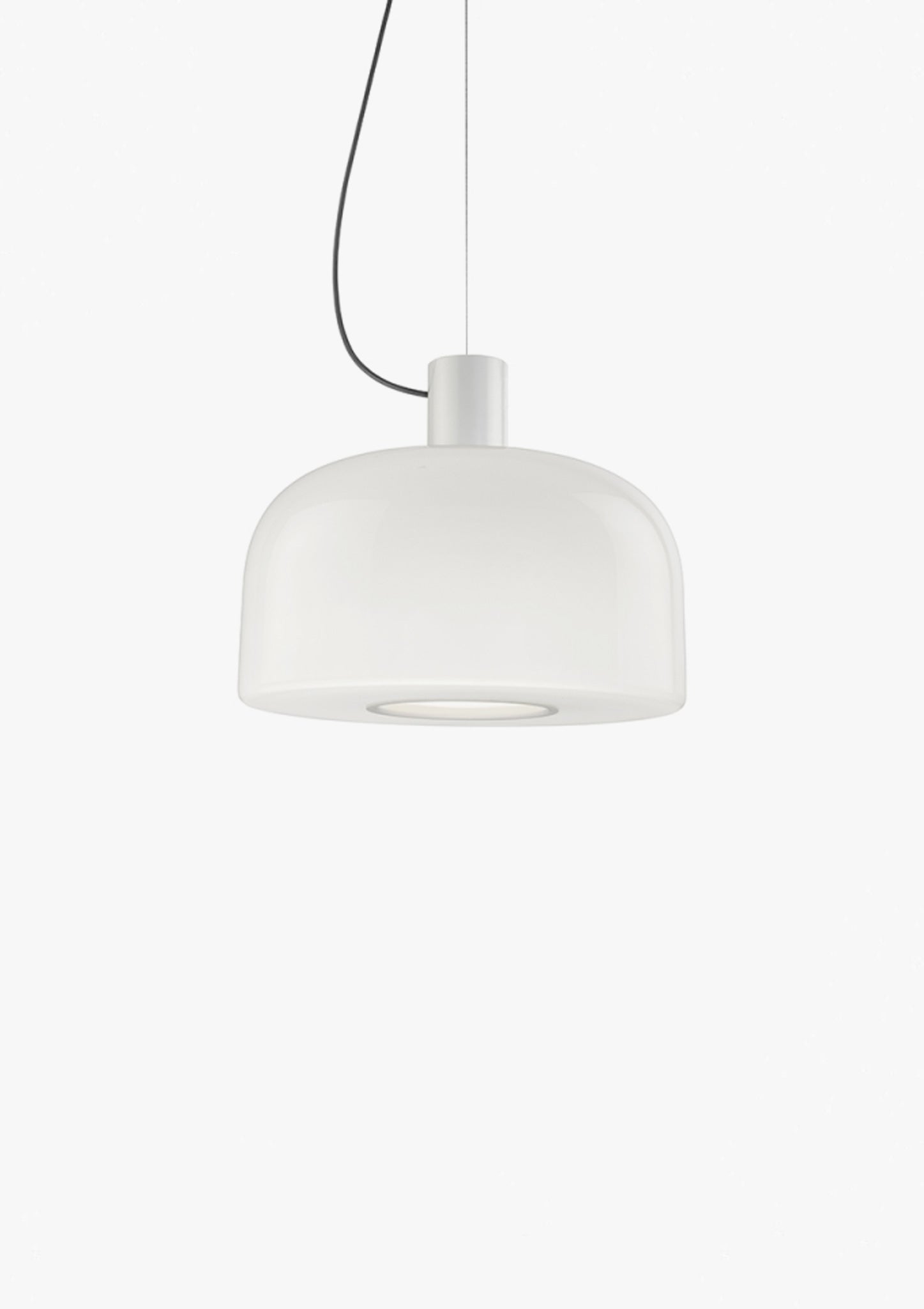 Scopri la Bellhop Glass, un'icona di design contemporaneo che unisce eleganza e funzionalità. Questa lampada a sospensione in vetro opalino triplex rappresenta la perfetta fusione di estetica minimalista e innovazione, rendendola ideale per ogni ambiente, dalla sala da pranzo all'ufficio.