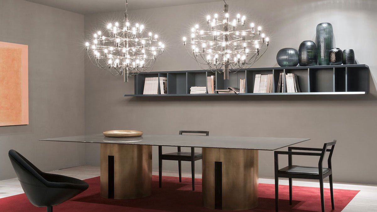 Scopri lo chandelier 2097/50, il più grande della sua famiglia con un diametro di 100 cm, progettato dal designer Gino Sarfatti nel 1958 per Flos. Questa lampada a sospensione è un'icona senza tempo dell'illuminazione di design, perfetta per aggiungere un tocco di eleganza a qualsiasi ambiente.
