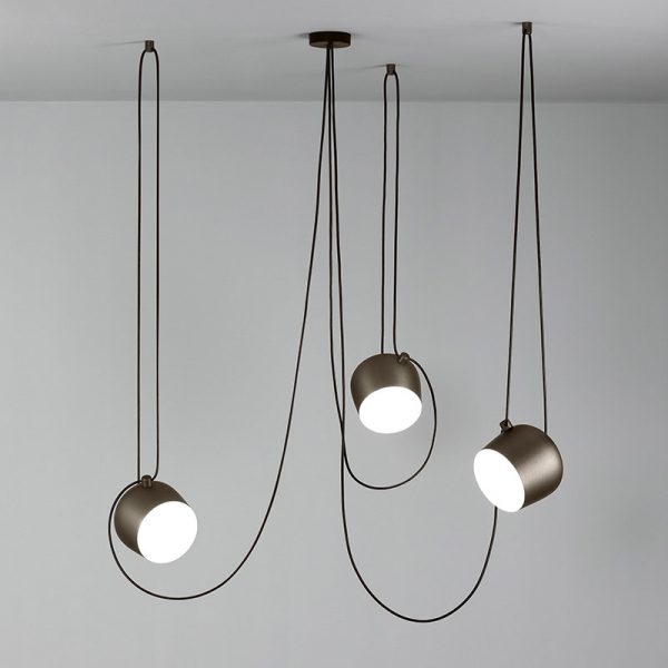Scopri le lampade Aim SMALL di Flos, una soluzione d'illuminazione innovativa in policarbonato che riduce all’essenziale gli elementi di una lampada a sospensione: un cavo e un diffusore. Progettate dai rinomati designer Bouroullec, queste lampade presentano un design dal forte impatto scenografico e una forma originale, rivoluzionando la tradizionale centralità geometrica del punto luce.