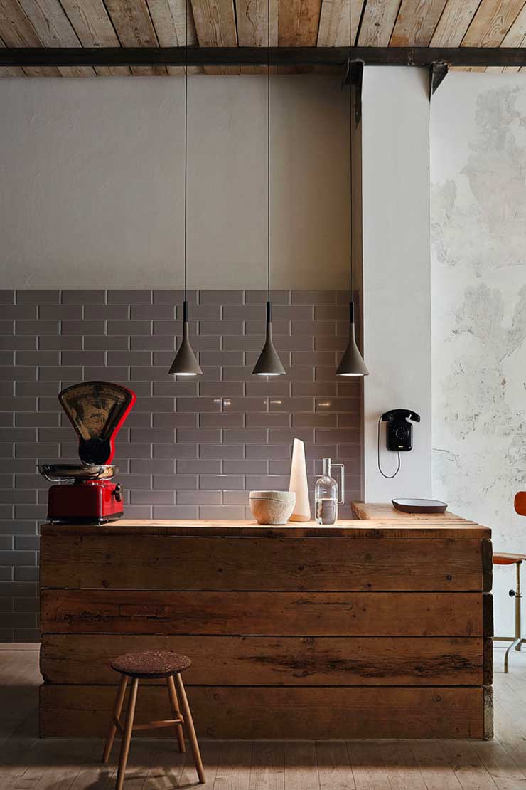 Aplomb Mini si rivela perfetta per essere collocata su tavoli e penisole, sia da sola che in composizioni, aggiungendo un tocco di eleganza e funzionalità.