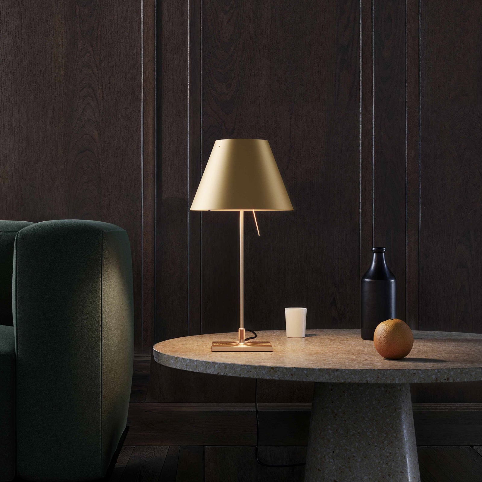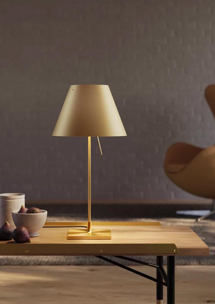 La Costanzina nella raffinata finitura Gold illumina con discrezione e carattere, grazie al suo design essenziale e alla luce calda e diffusa che l’ha resa un’icona dell’illuminazione contemporanea.