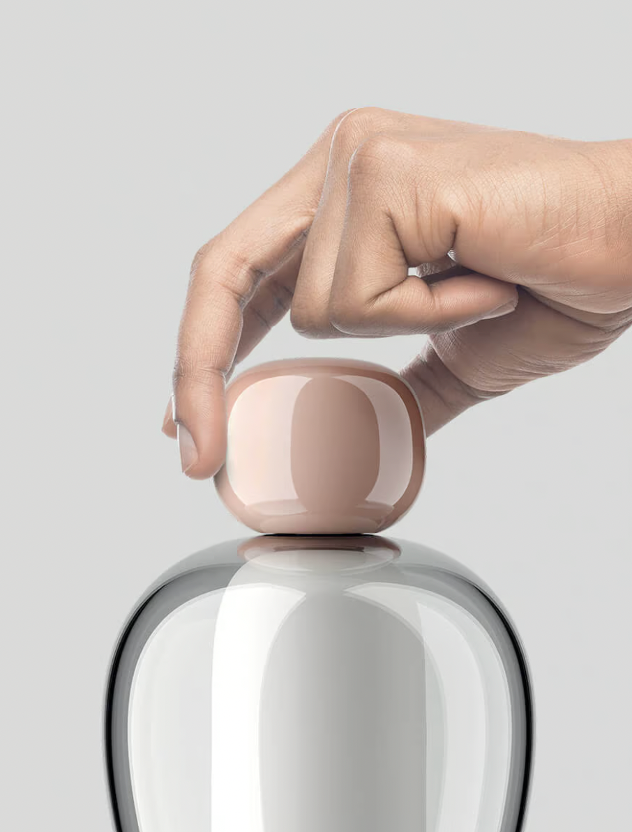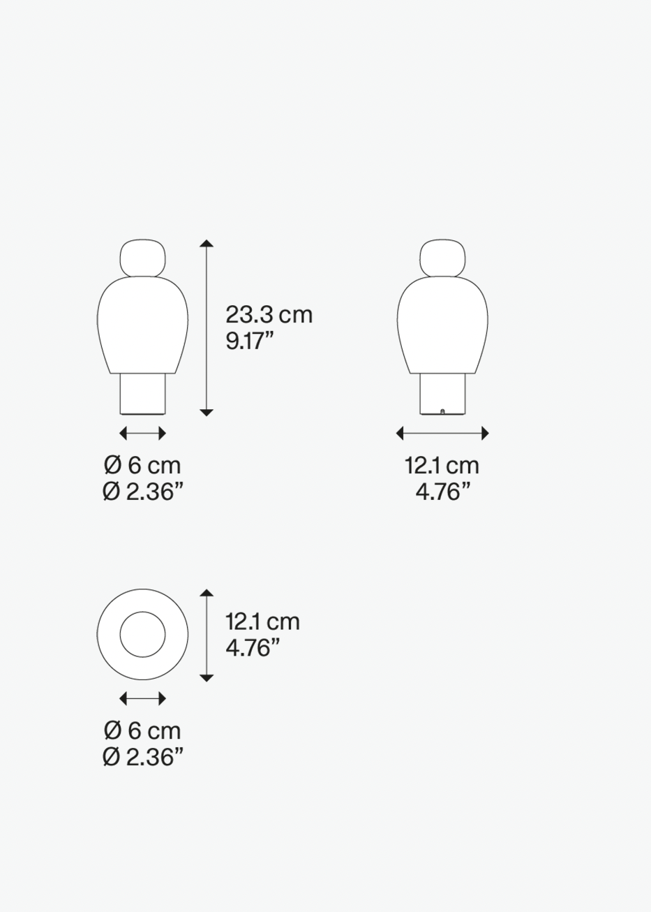 Easy Peasy è una lampada da tavolo portatile e ricaricabile dal design scultoreo, ispirato alla forma delle campane. Composta da due elementi (corpo e pomolo), è realizzata in vetro soffiato e metallo, con una base che ospita una sorgente luminosa LED. Disponibile in quattro combinazioni di colori e due forme, la lampada offre una luce regolabile grazie alla funzione dim-to-warm, che permette di variare intensità e calore per creare atmosfere intime.