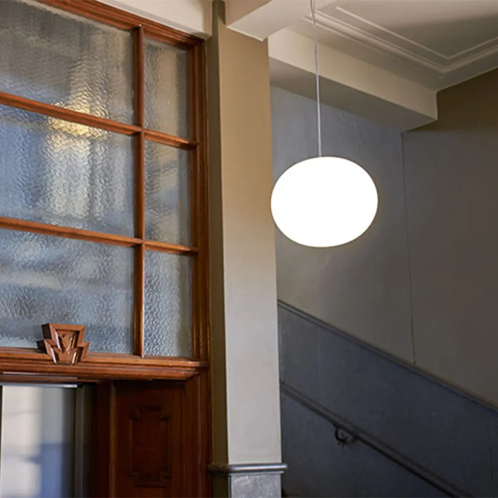 La lampada Glo-Ball nella versione a sospensione è una lampada semplice ed elegante ideata da Flos.
