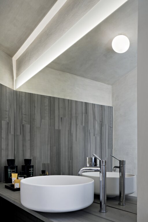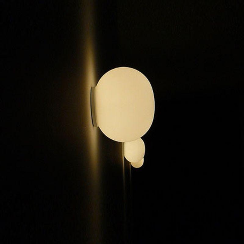 Lampada Glo-ball mini di Flos, per applicazione a specchio (Mirror) oppure a parete.