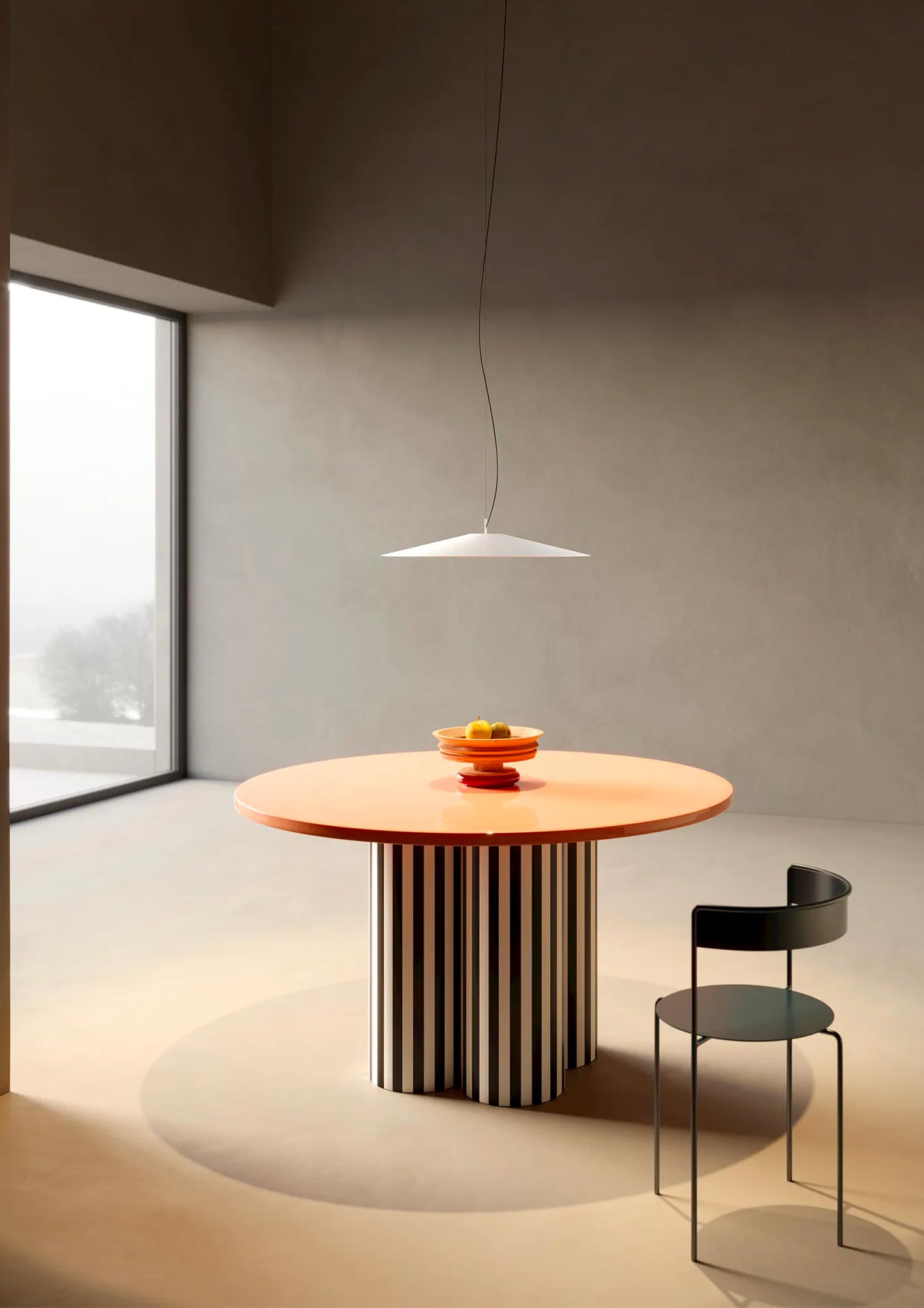 Eleganza e purezza nella forma caratterizzano la famiglia di lampade a sospensione "Koinè" di Luceplan, che prende il nome dal significato di "linguaggio condiviso" e dalle sue forme che la rendono estremamente versatile. La sorgente luminosa è dotata di una lente minerale appositamente progettata. Il fascio di luce distribuito dalla lente è omogeneo e distinto, un ampio cono di luce con bordi ben definiti.