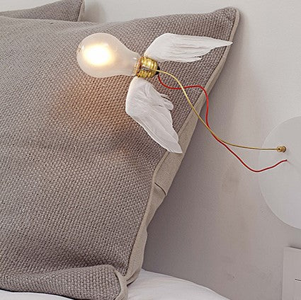 Il nome "Lucellino" nasce dalla combinazione di "uccellino" e "luce", riflettendo la sua essenza unica. Le ali, realizzate artigianalmente con piume d'oca, sono elegantemente fissate direttamente al portalampada E27.