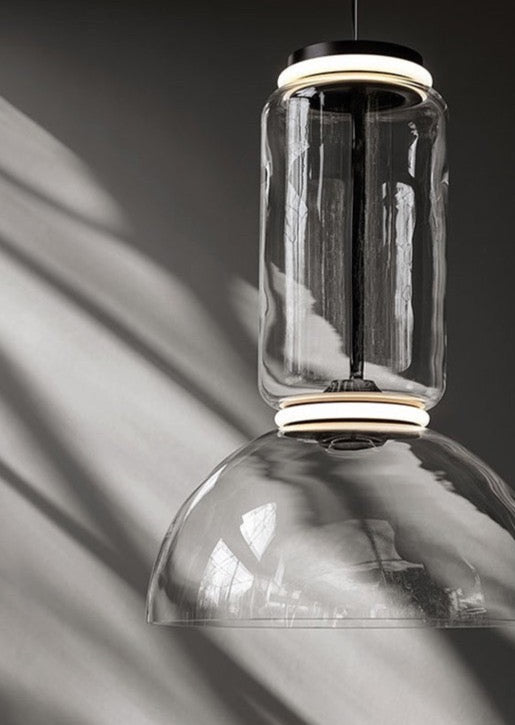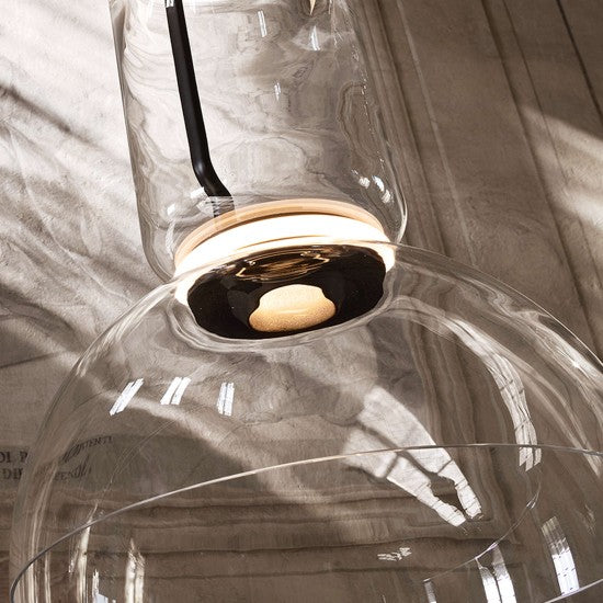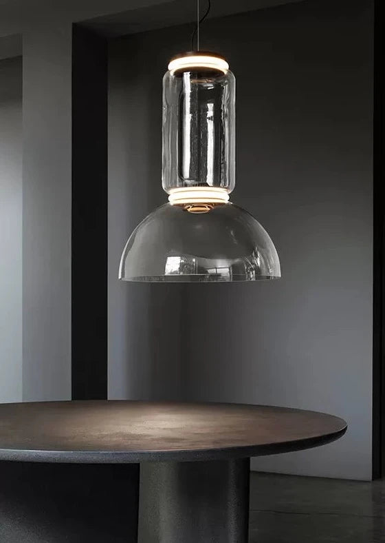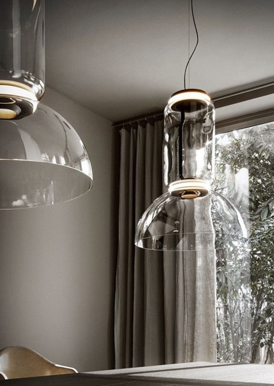 Noctambule Suspension 1 Low Cylinder Bowl di Flos disegnata da Konstantin Grcic è una lampada da terra composta da un cilindro in vetro soffiato sormonatato da un cono, i due assieme formano una struttura alta 91 cm.