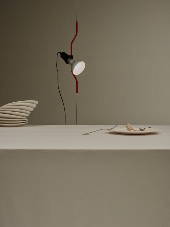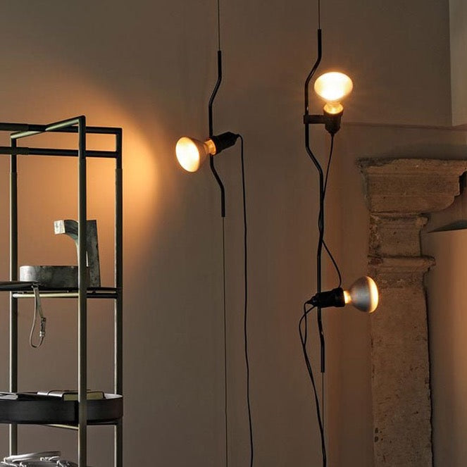 Castiglioni parlando dell'intuizione di Pio Manzù disse: “Ho sostituito l'ipotesi di Manzù, un'asta con l'idea di utilizzare una corda in metallo, che deviata, fa attrito e permette al corpo lampada di rimanere in posizione senza l'ausilio di nessuna vite”.