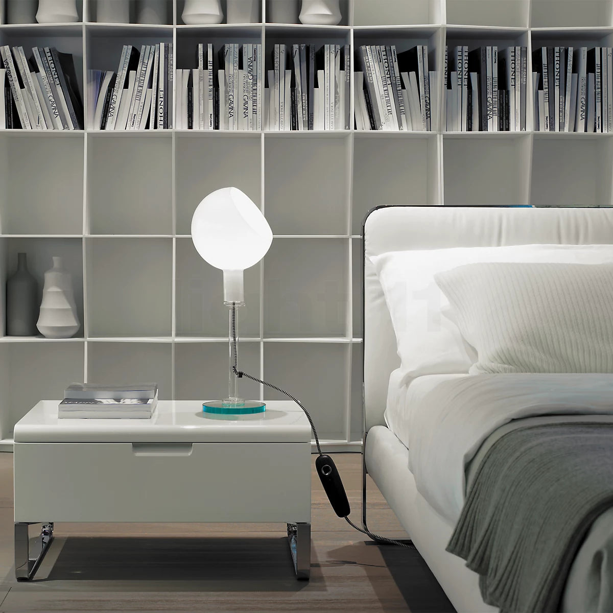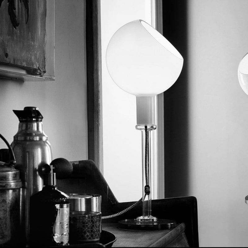 Nella lampada Parola, disegnata da Gae Aulenti e Piero Castiglioni nel 1980, convivono in un solo oggetto tre diverse tipologie e lavorazioni del vetro: soffiato, naturale e cristallo naturale. Rappresenta un modello esemplare di integrazione tecnica fra artigianato e industria.