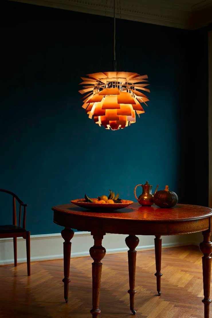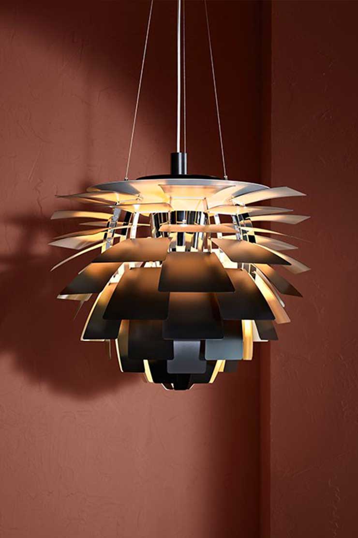 Louis Poulsen: La sospensione PH Artichoke ø48cm di Louis Poulsen, progettata nel 1958 da Poul Henningsen, si distingue per le sue foglie in rame dalla finitura rosa interna, creando una luce riflessa calda ed elegante. L'assemblaggio artigianale delle sue 72 lamine su 12 file conferisce alta qualità e uno stile distintivo. La forma iconica del "carciofo" e le varie finiture disponibili, tra cui rame, acciaio, ottone e bianco/nero, la rendono un'opzione scenica ed elegante per l'illuminazione d'ambiente.